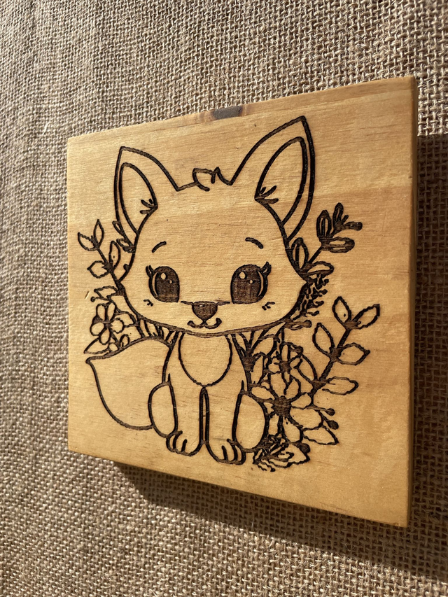 Le motif du renard est gravé au laser en profondeur pour une meilleure durabilité et un rendu précis.