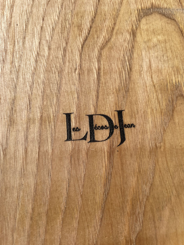 La cavité est ensuite remplie de résine noire, offrant un contraste élégant entre le bois naturel et le motif profond.