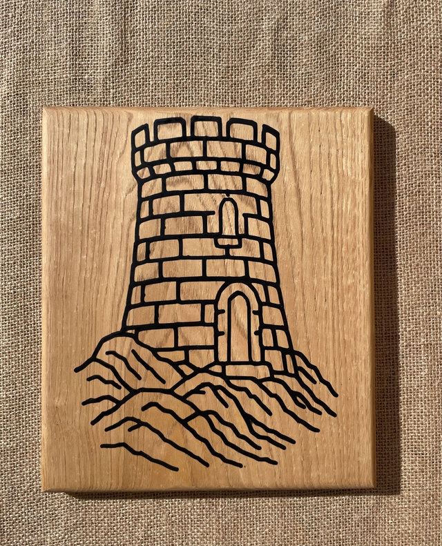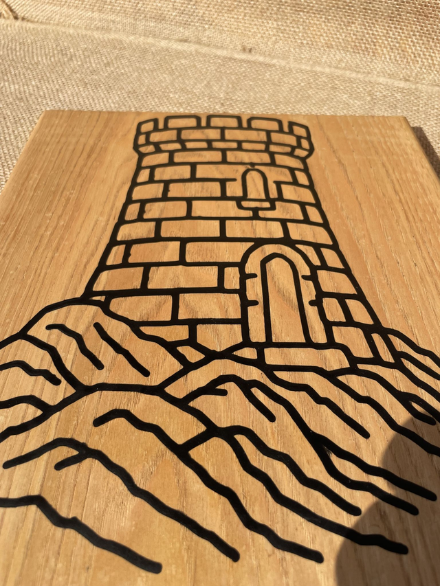 Je découpe chaque dessous de plat à la main dans mon atelier, puis je creuse le motif d’une tour génoise, symbole emblématique de la Corse.