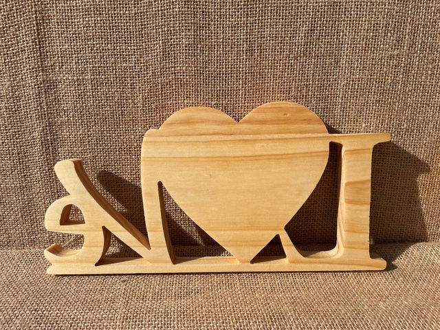 Je découpe le mot Love à la scie à chantourner, en transformant le “O” en un cœur délicat.