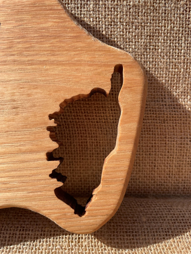 Je découpe la poignée en forme de Corse à l'aide d'une scie à chantourner.