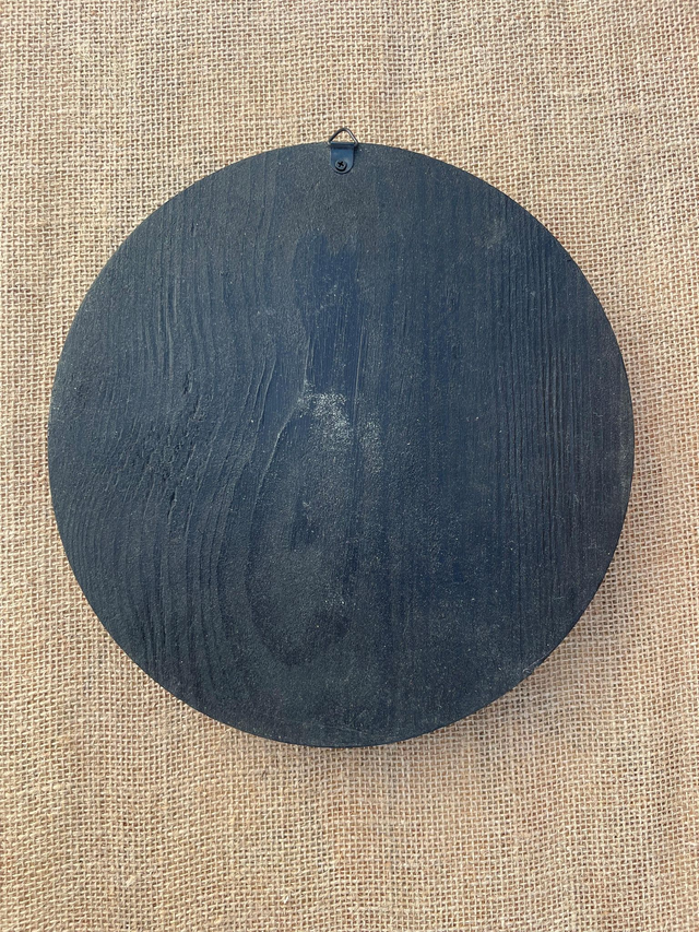Cette forme délicate est ensuite collée sur le fond, créant un contraste élégant entre le bois naturel et le noir profond.